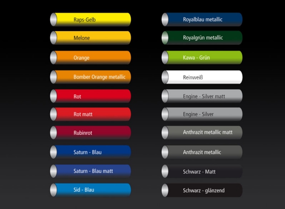 Gegen einen geringen Aufpreis pulvern wir Ihr Bike auch mehrfarbig oder in nahezu jeder anderen WUNSCHFARBE.